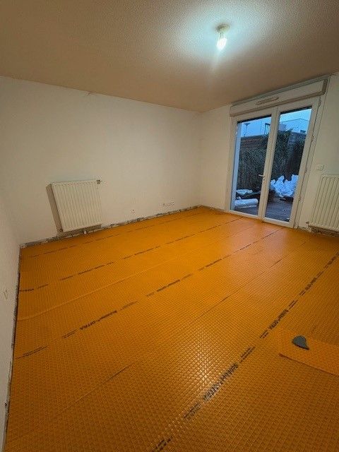 ✔️ Pose d’une natte de désolidarisation @schlutersystemsfrance afin d’absorber les futurs mouvements de la dalle